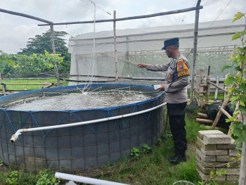 Bhabinkamtibmas Wedoro Dukung Ketahanan Pangan Lewat Budidaya Ikan Patin di Lahan Kosong